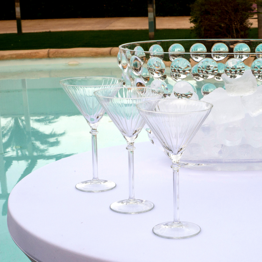 Copa Cocktail Martini «Gatsby» 25cl en vidrio transparente con parte superior estriada. Su diseño elegante y sofisticado la hace perfecta para los amantes de lo clásico.