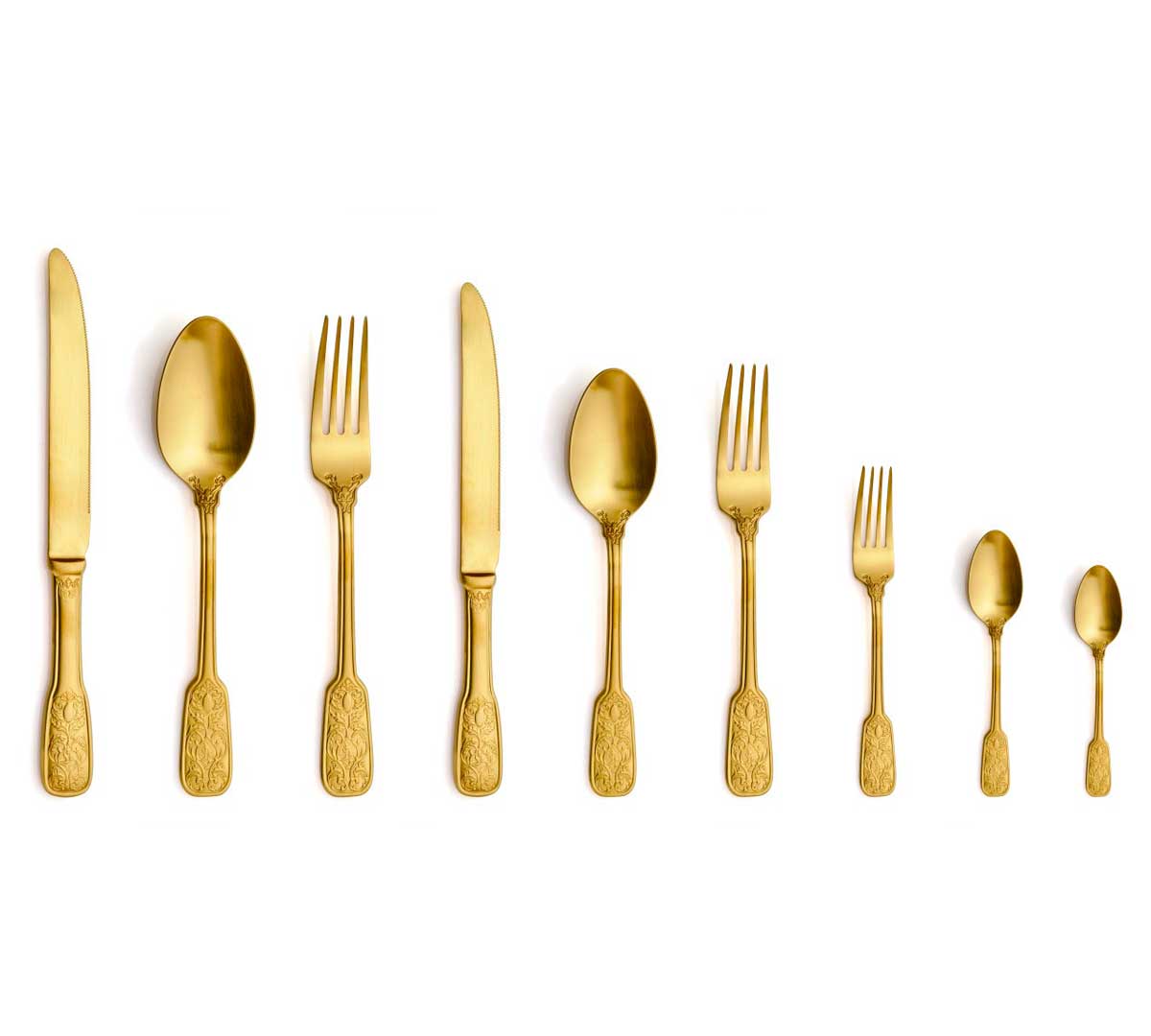 Sumérgete en el lujo con nuestra colección exclusiva de cubiertos Versailles en elegante color oro. Fundidos en acero inoxidable 18/10, con un lustroso acabado satinado y un sólido espesor de 3,5 mm, estos cubiertos encarnan un diseño que fusiona la elegancia y la sofisticación. Los intrincados detalles labrados en el mango añaden un toque de refinamiento, convirtiéndolos en la elección predilecta para ocasiones especiales y eventos formales. Eleva la experiencia de tus comensales con la distinción que solo nuestros cubiertos Versailles pueden ofrecer.