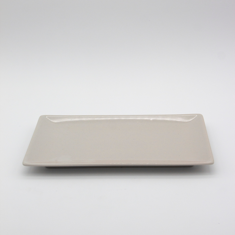 Bandeja rectangular 25×15 cm en tono hueso, diseño sofisticado y resistente. Perfecta para presentaciones elegantes.